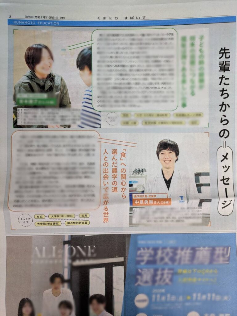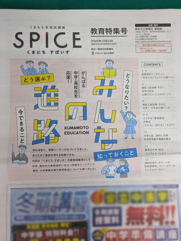 熊本県のフリーペーパー「くまにちすぱいす」10月31日発刊号の教育特集にて、